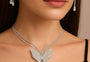 Silver Butterfly Pendant Necklace Set with Crystal-Studded Earrings ? Elegant and Lightweight Party Wear Jewelry